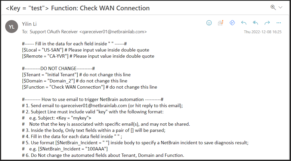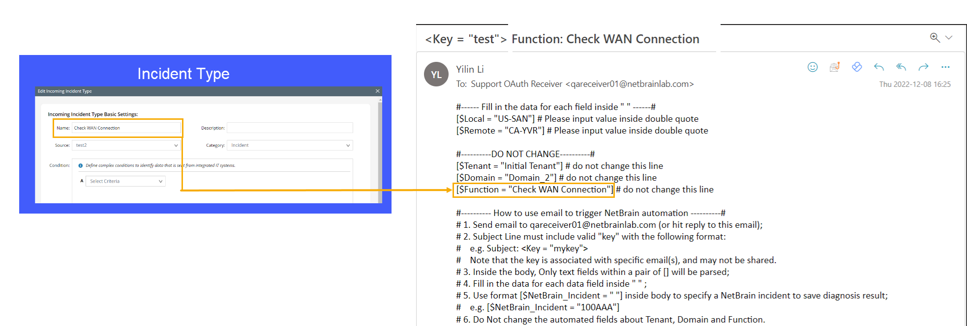 - Send the Email to NetBrain.