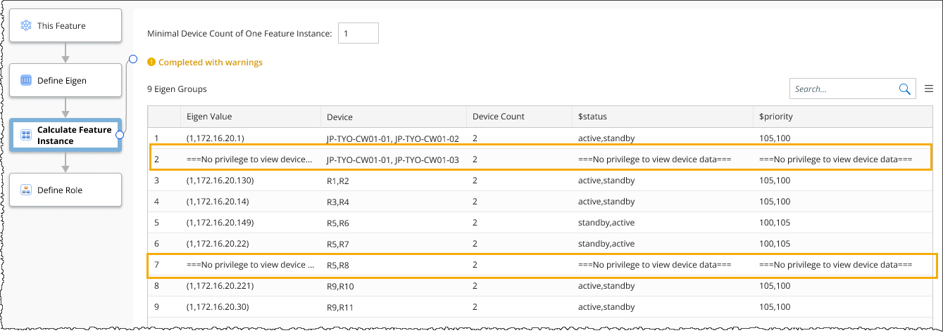 - When you Calculate and View Instance Results, if any device involved in a row of results does not have DAC permissions, only the device and count columns will be displayed normally for that row; other columns will not be able to show data, as shown below.