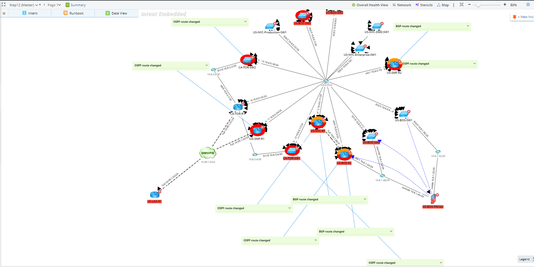 Dynamic Map represents the evolution of visualizing and documenting the network. The Dynamic Map can be created in advance to document your network, for example, mapping all sites and your core network. Dynamic Map can help you to understand a network design and ensure you always have accurate, up-to-date network documentation. Everything about a network can be discovered and continuously documented through NetBrain’s interactive media. This data includes: