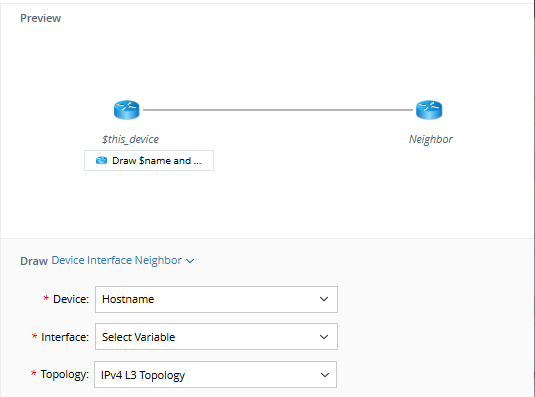 Note: If you select an IP address in the Select Device field, it will be automatically converted to a device hostname. - Device and Interface: draw the device and interface contained in the interface variable, and the topology type can be selected.