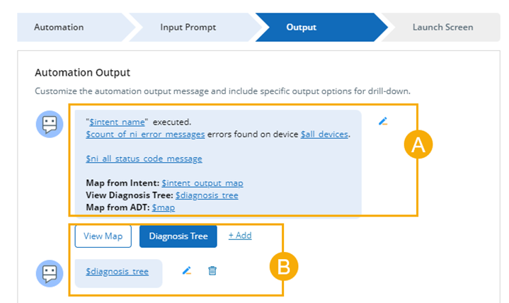 - If you want to modify the automation result output: Define Output with Prompt Nodes
