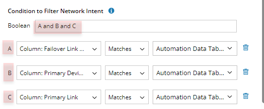 - The value candidates are from the selected column in the same ADT. In this example: From the Failover Link Name column in the Failover Links Check ADT.