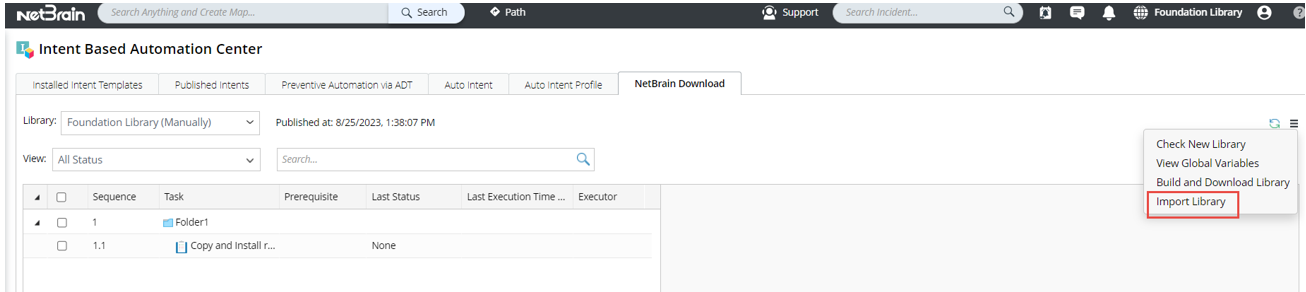After the updated NetBrain NIT package is shared to you, follow the steps to import the library: