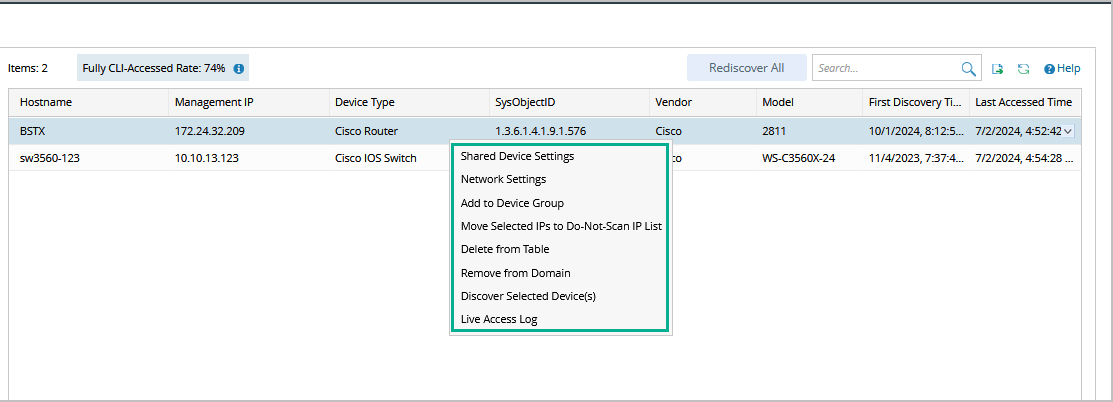 After the IP addresses are discovered successfully, they will be moved to the Fully Accessed via CLI list.