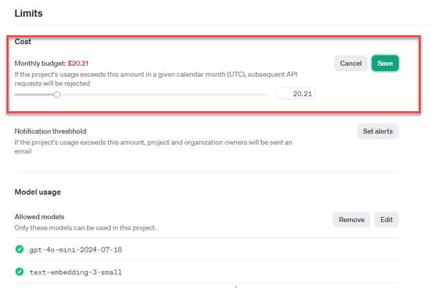 - Set usage limits and model.