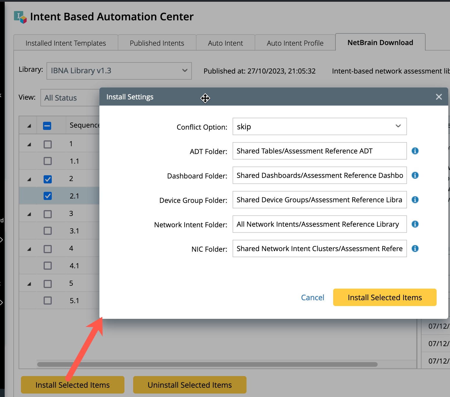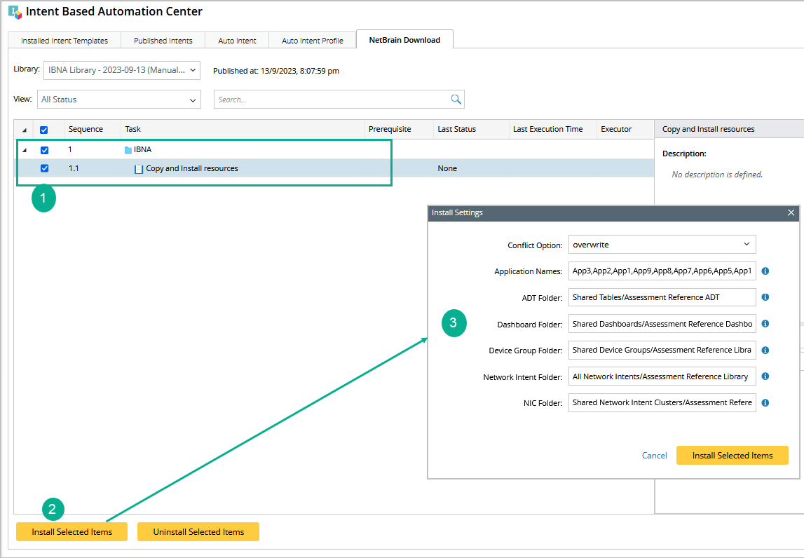 - Define the install settings in the pop-up Install Settings dialog box, then click Install Selected Items.