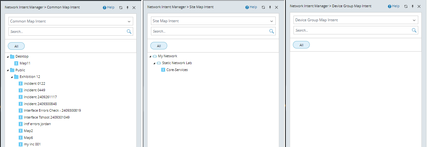 Intents are further grouped into three categories: Common Map Intent, Site Map Intent, Device Group Map Intent so that you can know the source and functionalities of the map intents.