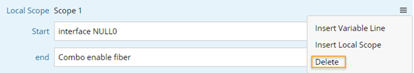 Local scope can be added to define the text scope for var line and can apply to any var line after it. One or more local scopes can be defined in one pattern. This function is suitable for parsing configurations that have multi-level relationship through a single pattern.