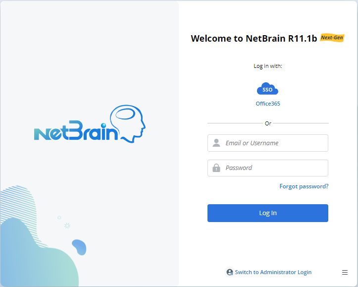 - In your web browser, navigate to http(s)://<Hostname or IP address of NetBrain Application Server>/.