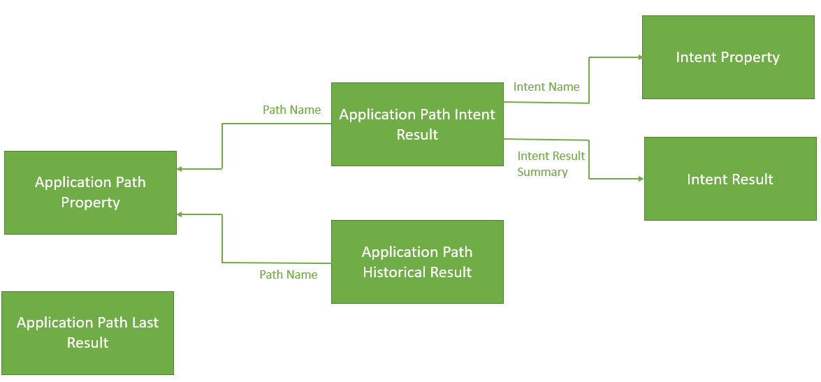 - Application Path Intent Result, Application Path Historical Result look up to Application Path Property via the report field Path Name.
