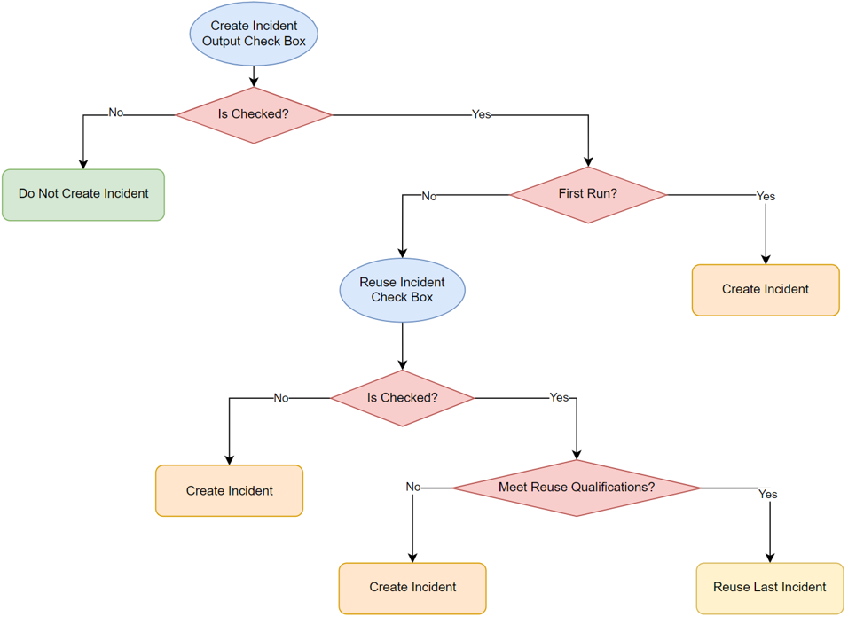 - Reuse Incident check box — indicates whether to use an existing incident from the second execution of NI. When the condition is not met, a new incident will be created. If it is not checked, a new incident is always created.