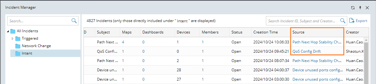 - For Single Intent: In the NI View mode, incidents generated by this intent can be displayed.