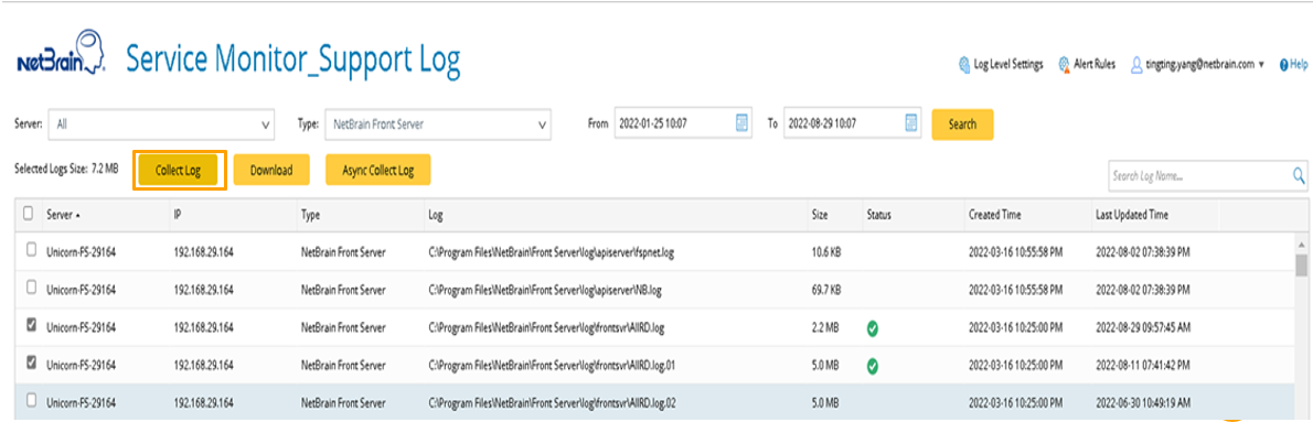 - Select log items and click Collect Log. The status will change to