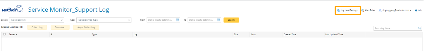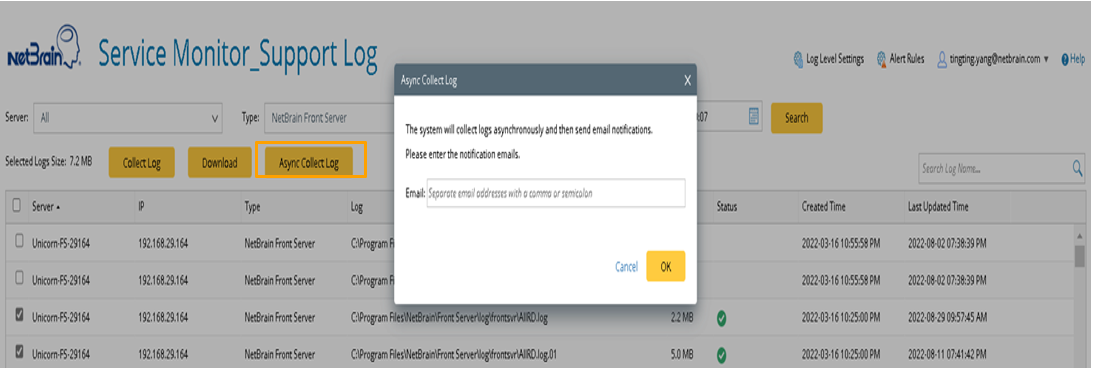 - Click Async Collect Log, then enter an email address in the pop-up window.