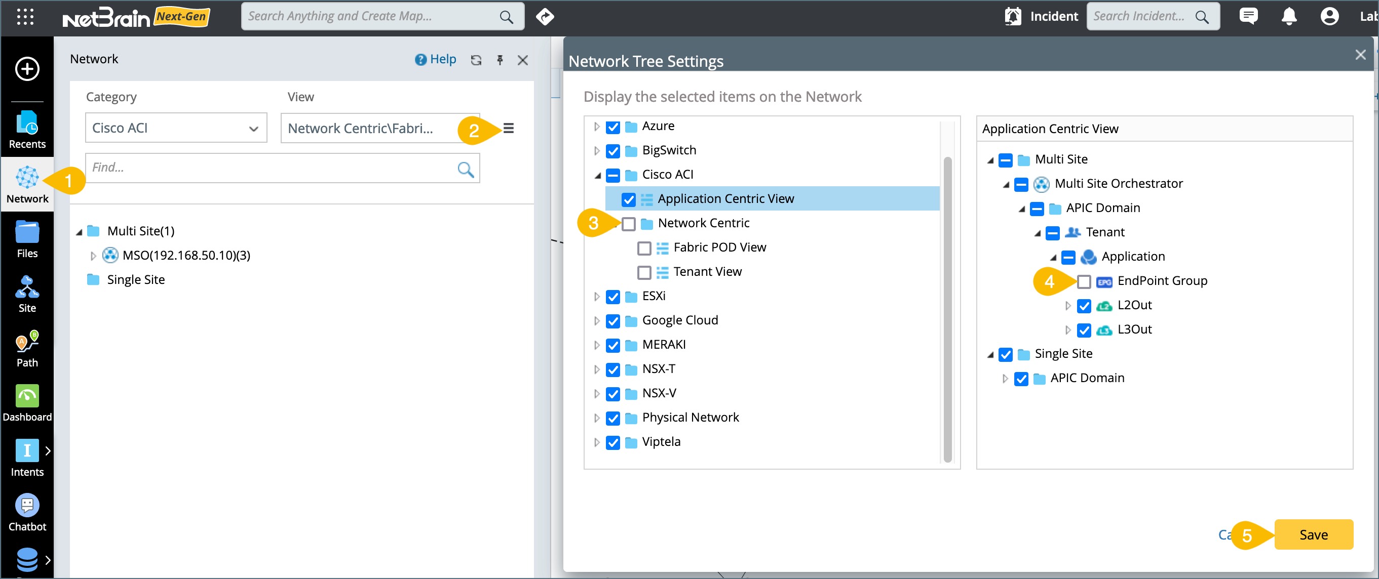 Example: Disable the ACI Network Centric View and exclude EPG from the Application Centric View.