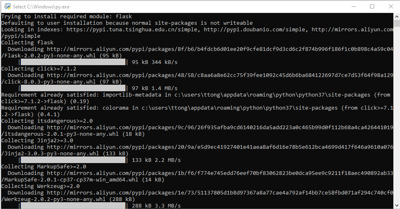 It takes several minutes to install the python library installation the first time. The website browser with URL http://localhost:9000/ will pop up automatically after the installation.
