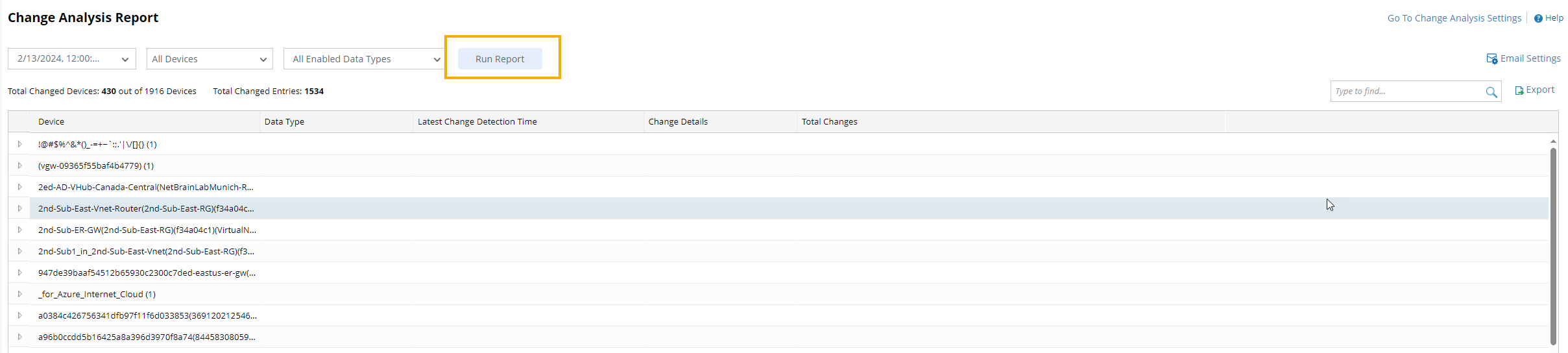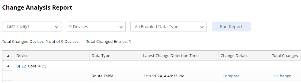 A global change analysis report allows you to track the data change of the entire network in your domain.