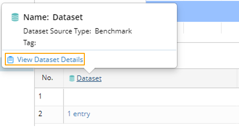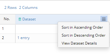 - Click on the column header of a dataset column, then the column Name, dataset source type and dataset tag (if any) will be displayed. Moreover, you can check the dataset details (View Dataset Details).