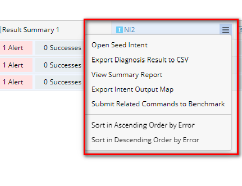 - From the dropdown menu of an intent column in ADT View, the following operations can be performed as shown in the screenshot below: