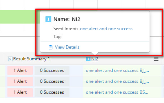 - Click on the intent column header, the intent column name and the Seed Intent for replicating intents in this column, and tags (if any) are shown.