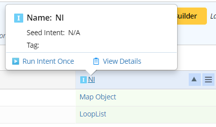 - Click on the intent column header, the intent column name and the Seed Intent for replicating intents in this column, and tags (if any) are shown. Plus, users can run intent once or view intent details from here.