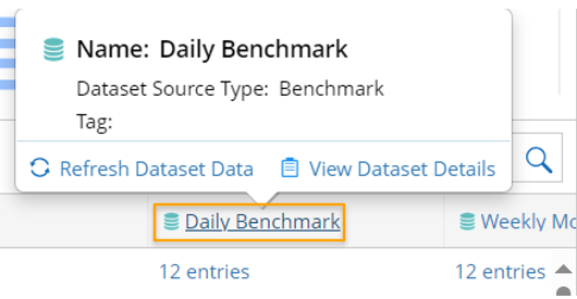 - Click on the column header of a dataset column, then the column Name, dataset source type and dataset tag (if any) will be displayed. You