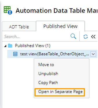 - Go to ADT Manager > Published View folder to check the published view: The published view will be stored in the Published View folder tree in ADT Manager.