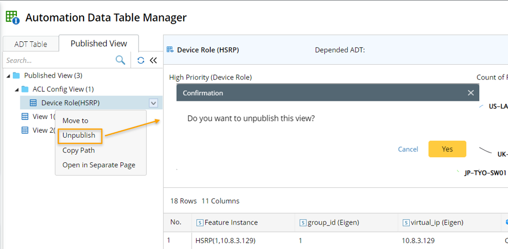 Alternatively, you can unpublish a view from the main menu of the view in ADT Manager.