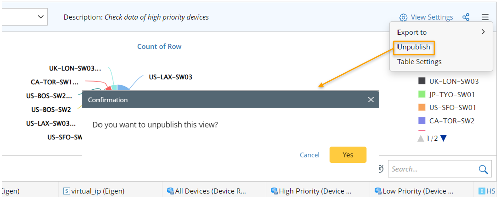 The view will be removed from the Published View folder Tree. Corresponding user privilege is required to unpublish a View.