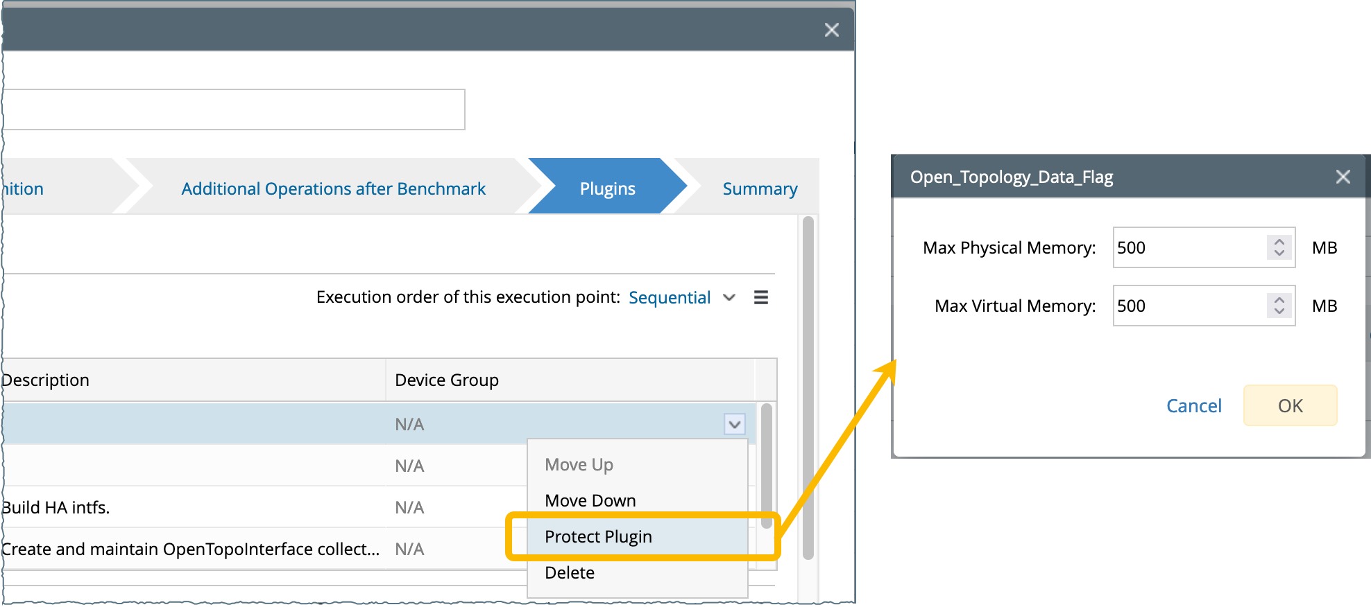 - Define the physical and virtual memory protection for plugins. Right-click a plugin, select Protect Plugin, and enter the maximum memory value to allow executing the plugin. When the predefined memory value is reached, the plugin process will be ended.
