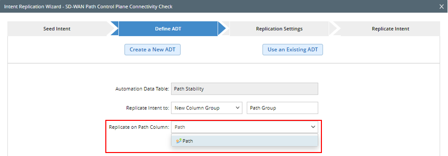 Note: When the seed intent in intended to do Path-based replication, it is required to select an existing ADT containing path column. Otherwise, an error message will appear.