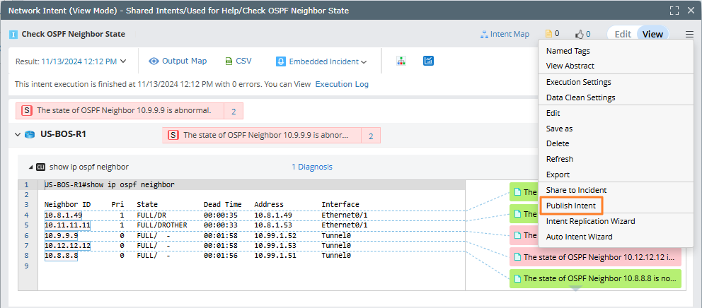 Note: You can select an Intent to do more operations, such as viewing its results via the diagnosis tree and running this Intent.