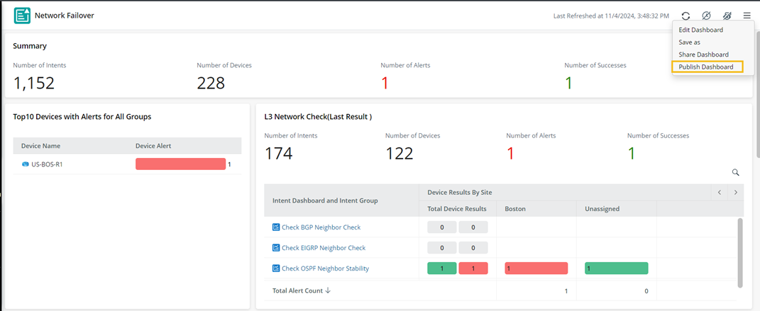 Once published, these dashboards are duplicated and stored in the Published tab, separating them from case-based troubleshooting dashboards for easier distinction, making it easier for you to view and manage company-wide dashboards.