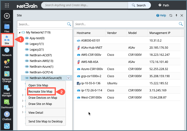 When any customer's site map has changed the layout or if it is missing any links. Netbrain needs to generate a recreate the site map according to the new site structure and overwrite the old site map as follows:
