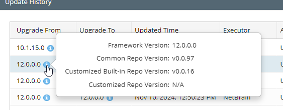 icon in the Upgrade From column and Upgrade To column, you can check the Framework Version and Repo Versions.