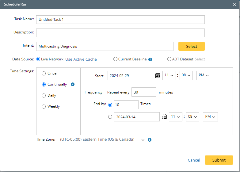• Able to set the data source, execution time, and frequency (Once, Continually, Daily, and Weekly).