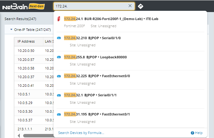 - Press the Enter key on your keyboard to start searching. The devices with interfaces in this segment are listed in the search results.