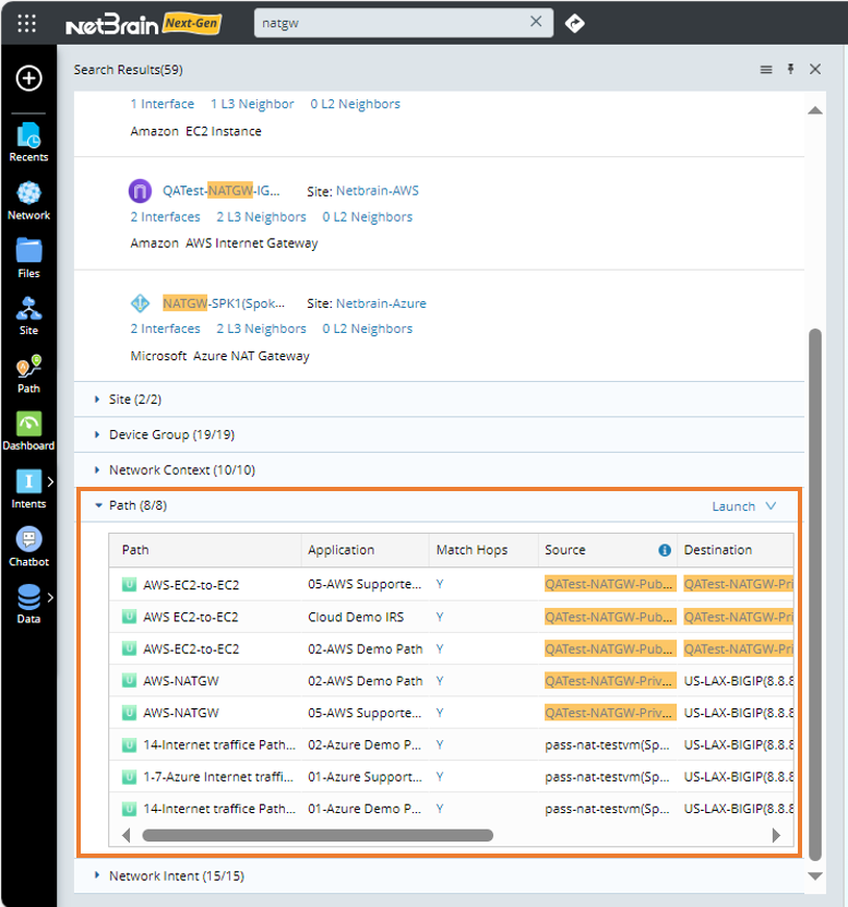 Note: When an IP address is entered in the source or destination field, you can perform a search using the associated device name as long as the IP address corresponds to a device within the domain.
