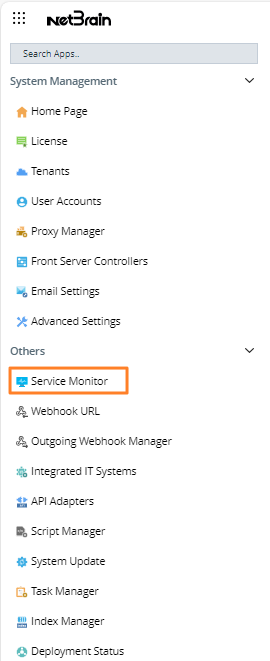 In the System Management page, you can login to Service Monitor with the following steps: