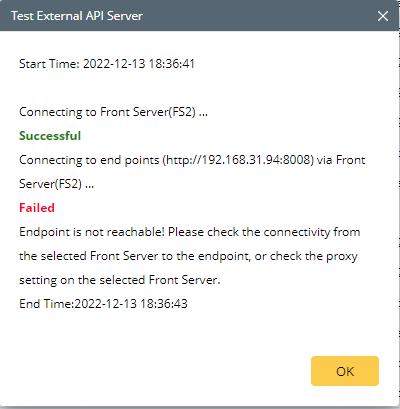 Possible Resolution: Confirm that the NetBrain Front Server(s) can reach the BMC Remedy Server on Port 8008 via HTTPs