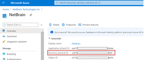 - Directory (tenant) ID: copy/paste the Tenant ID.
