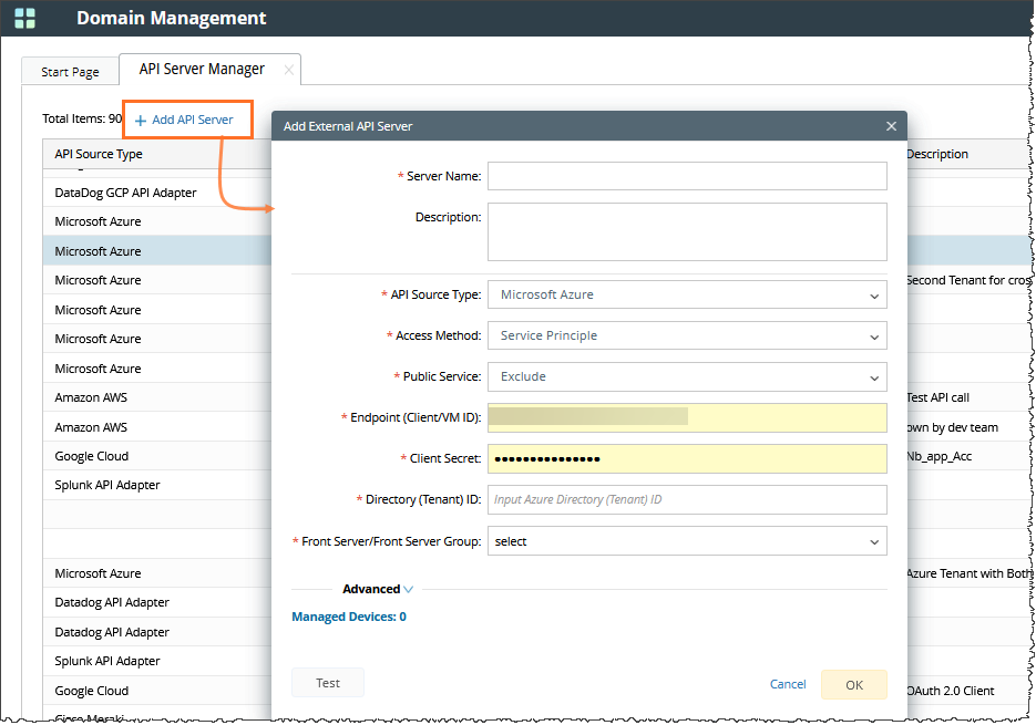 Once the API server is successfully verified and saved, you can proceed to Discover Azure Resources.