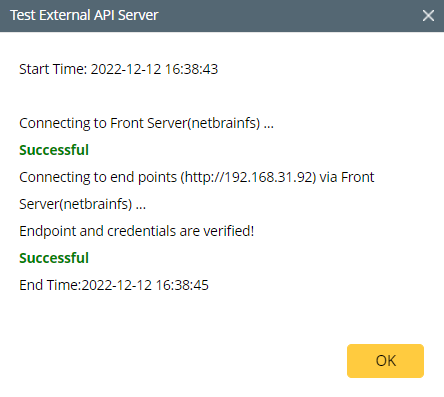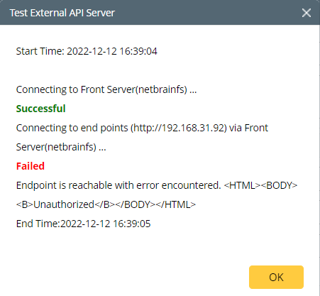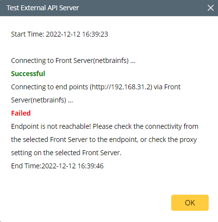 Error Scenario: Endpoint is not reachable! Please check the connectivity from the selected Front Server to the endpoint, or check the proxy setting on the selected Front Server.