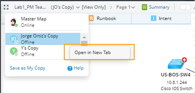 Alternatively, you can switch to a map copy by clicking Open in New Tab from the drop-down menu of that copy.