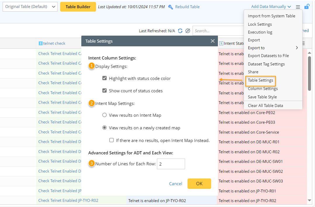 In Table Settings from the ADT main menu, you can configure more advanced settings for ADT, e.g., Display Settings, Intent Map Settings as well as the multiline text display.