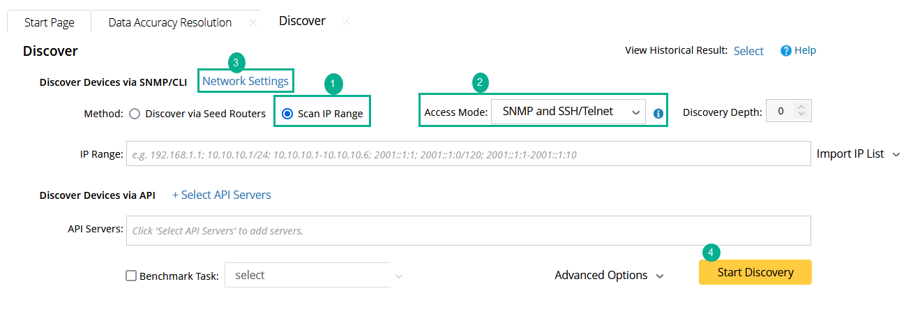 1) Select Scan IP Range to only discover the specified IPs.