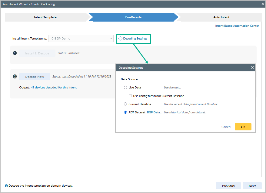 - The settings of using the ADT dataset for decoding intent are saved only after you apply the settings (clicking Install & Decode or Decode Now).