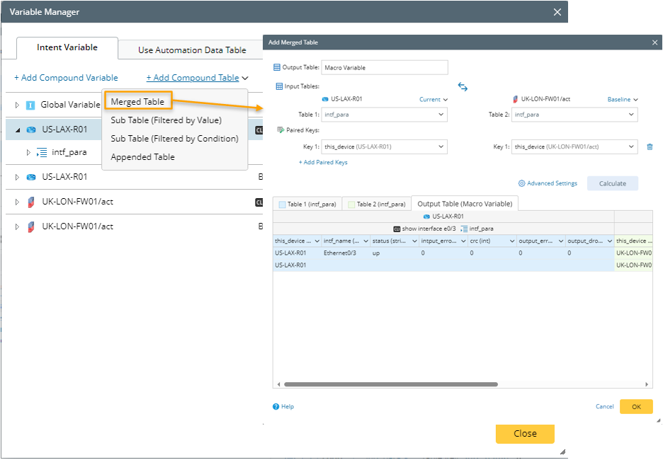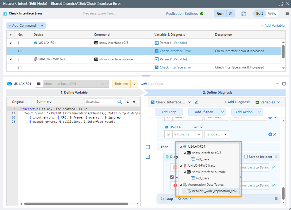 - Define Diagnosis on Built-in Data Table or ADT: By looping ADT in intent definition, the data in ADT can be applied to creating intent for resolving specific network problems.