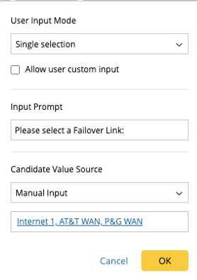 End users will select from the Candidate Value, and their selection will be used to match a row in the ADT. Then the intent located in the Failover Link Name column and this specific row will be matched and executed.