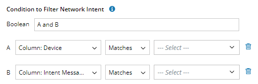 4. Define the Condition to Filter Network Intent. This setting defines the filtering criteria to execute the corresponding intent in the ADT based on filtered rows.